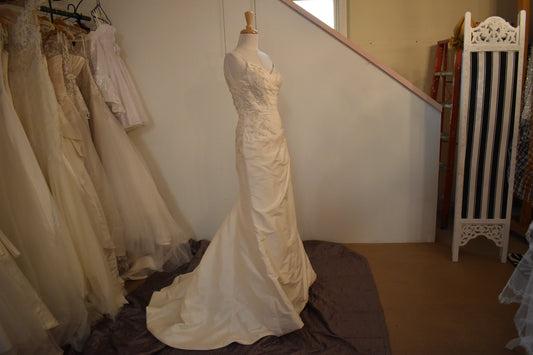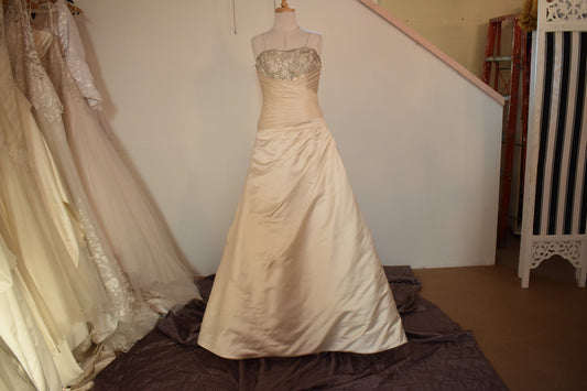 Please note: Fake tan is not permitted while wearing our gowns. A cleaning or damage fee will apply if fake tan is found on the garment.